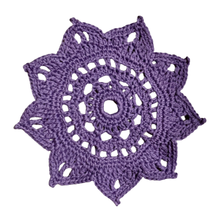 Gauge?: Idk, but it ended up around 8in in diameter with no blocking. Use different sized yarn and needles if you want it bigger or smaller